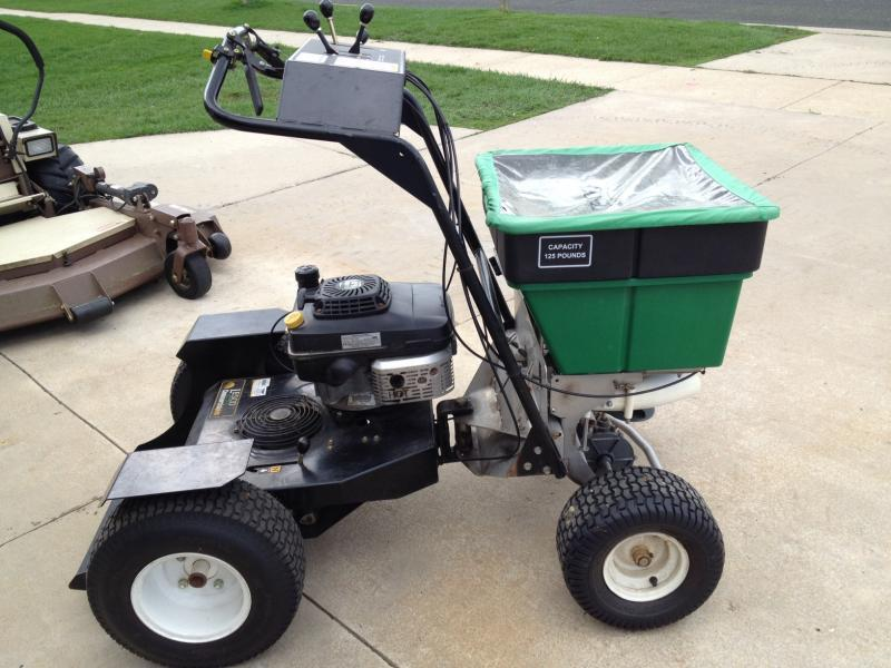 These self propelled units can cover between half and one acre with dry material and from one to two acres with liquid material.
